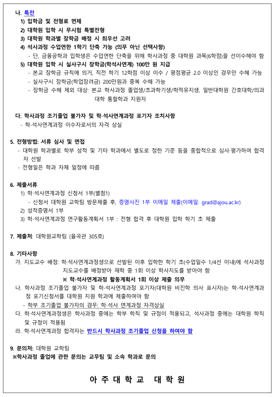 2026학년도 후기 학·석·박사통합연계과정생 모집 전형 실시를 아래와 같이 안내드립니다.
